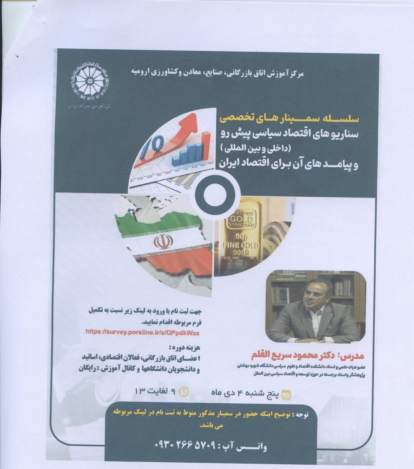 به اطلاع کلیه فعالان اقتصادی، صاحبان صنایع، بازرگانان و مدیران واحدهای تولیدی استان میرسد که سمینار تخصصی با موضوع «بررسی روندهای اقتصاد سیاسی پیش رو (داخلی و بینالمللی) و پیامدهای آن برای اقتصاد ایران» در روز پنجشنبه مورخ 4 دیماه 1404 برگزار خواهد شد.